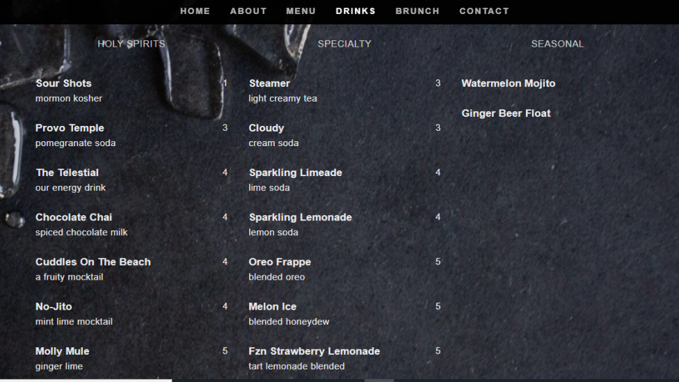 The Wash is like the Mormon version of a relaxed bar. Basically, they make specialty, non-alcoholic drinks. There are lots of seating options and it’s a nice atmosphere to talk and get to know someone. They open every day except Sunday from 7 to 11 pm.