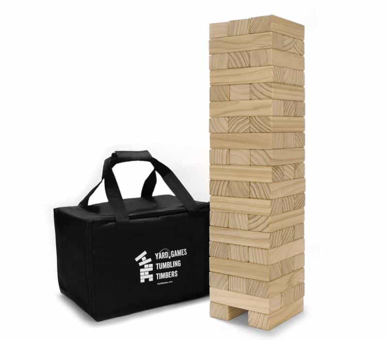 It’s like Jenga, but BIG! You can make things more interesting by tapping questions on the blocks. When someone pulls out a block successfully, they have to answer the question. Giant Jenga blocks can be bought, rented, or even built if you’re handy and have lots of wood.