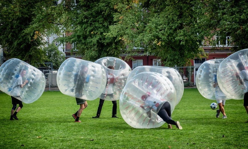 You may have seen/played Knockerball at a school event, birthday party, or work retreat. If you’ve never heard of it, you are in for a fun surprise. Also known as “Bubble Soccer,” Knockerball involves running around in big inflatable protection suits. Players can run into each other at full speed and not get hurt because the bubbles protect and bounce you around joyfully. You can use them to up the fun of any sport, forego the sport part altogether, and spend hours just knocking each other over. They can be purchased for top dollar or, more reasonably, rented out.